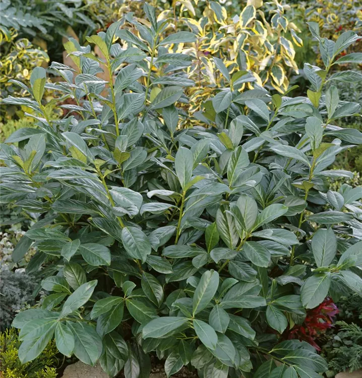 Die Lorbeerkirsche 'Rotundifolia' setzt schöne Akzente gemeinsam mit: