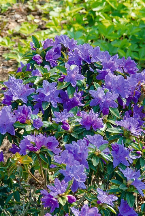 Rhododendron augustinii 'Aquamarin'® bildet von April bis Mai zahlreiche trichterförmige, blaue Blüten.