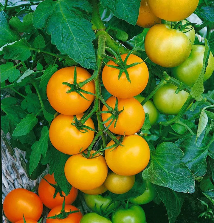 Die Tomate (Solanum lycopersicum) bildet Früchte, die aromatisch schmecken und bereits ab Juli geerntet werden können. Für das optimale Wachstum der Tomate werden ein sonniger Standort und durchlässiger, nährstoffreicher Boden benötigt.