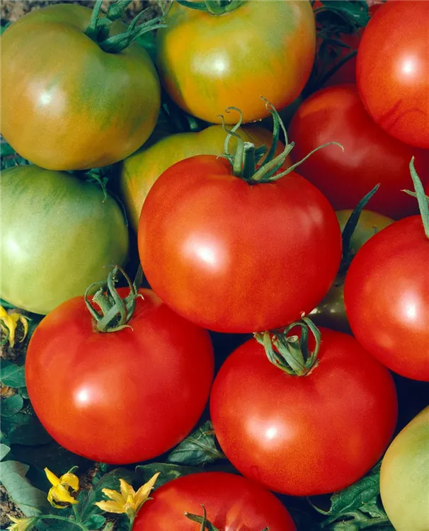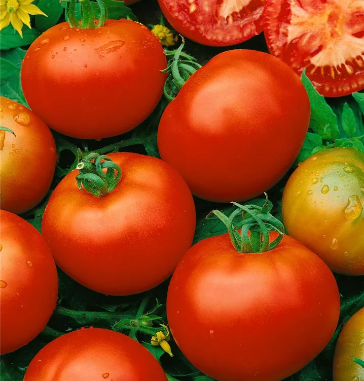 Die Tomate 'Moneymaker' (Solanum lycopersicum) bildet mittelgroße Früchte, die aromatisch schmecken und bereits ab Juli geerntet werden können. Für das optimale Wachstum der Tomate 'Moneymaker' werden ein sonniger Standort und durchlässiger, nährstoffreicher Boden benötigt.