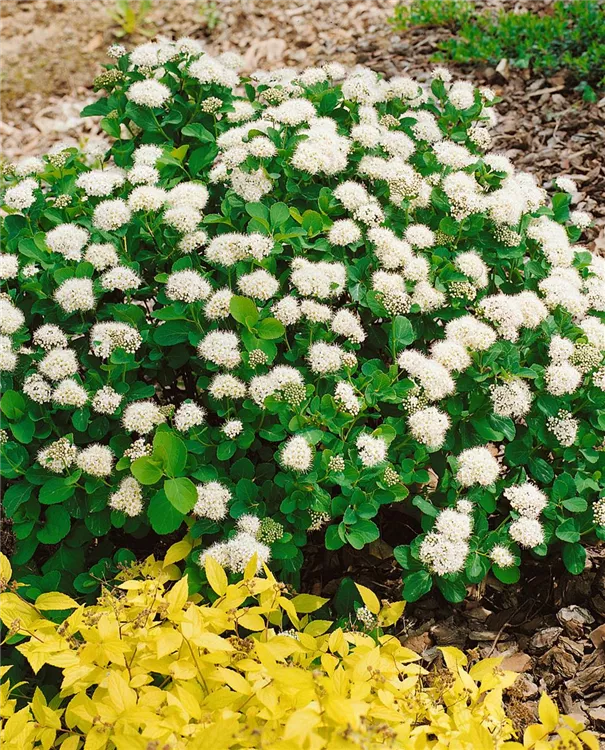 Die sommergrünen Blätter des Spierstrauchs sind mittelgrün, wechselständig.