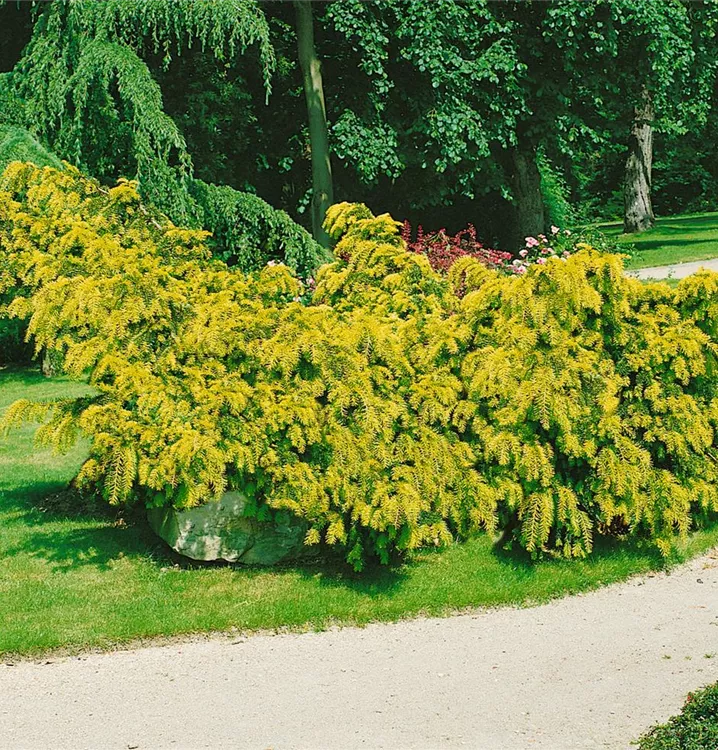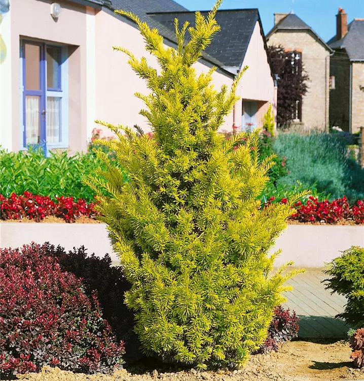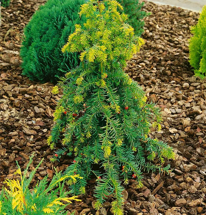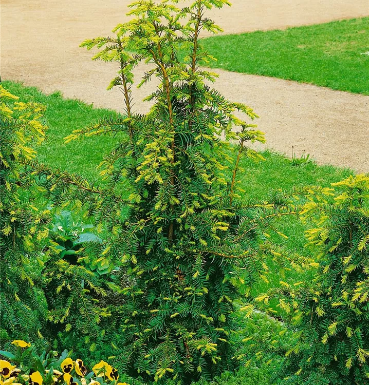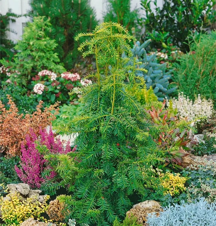Die Gelbe Adlerschwingen-Eibe 'Dovastonii Aurea' setzt schöne Akzente gemeinsam mit: