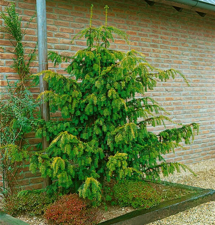 Sehr dekorativ. Die Gelbe Adlerschwingen-Eibe 'Dovastonii Aurea' ist immergrün. Ihre Nadeln sind mittelgrün.