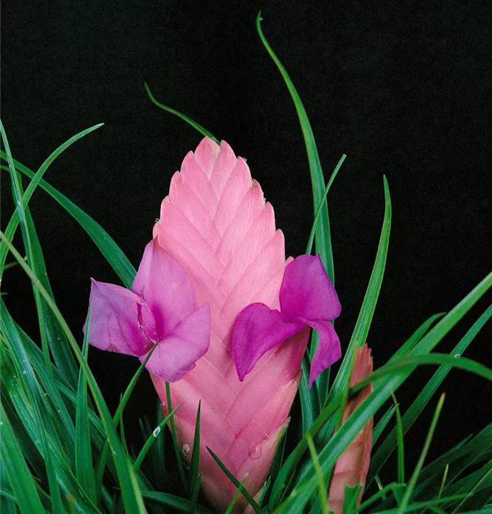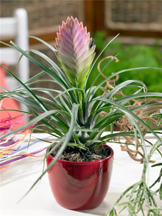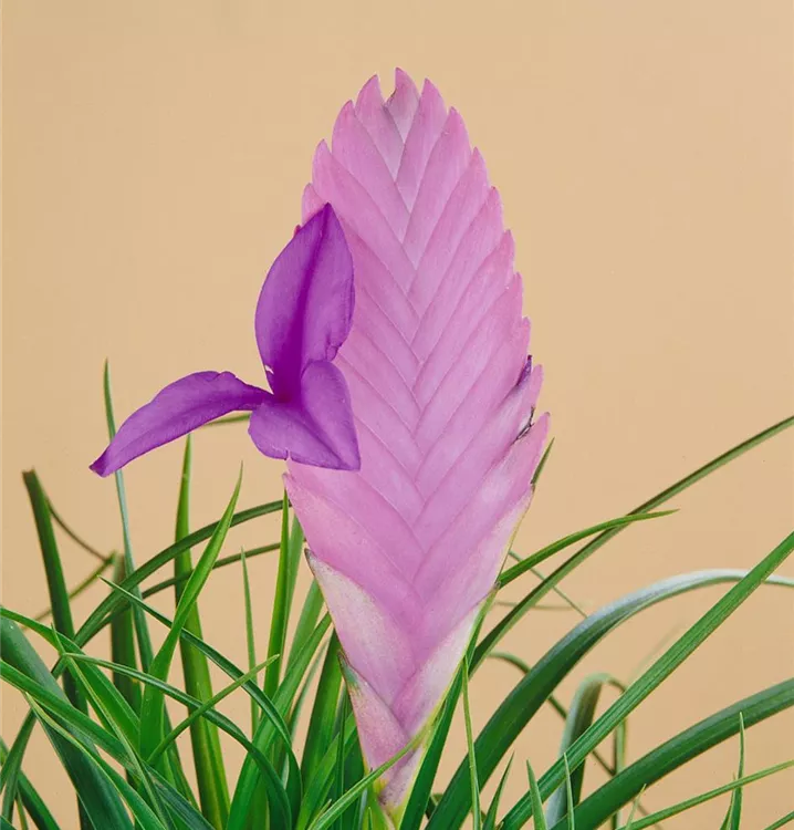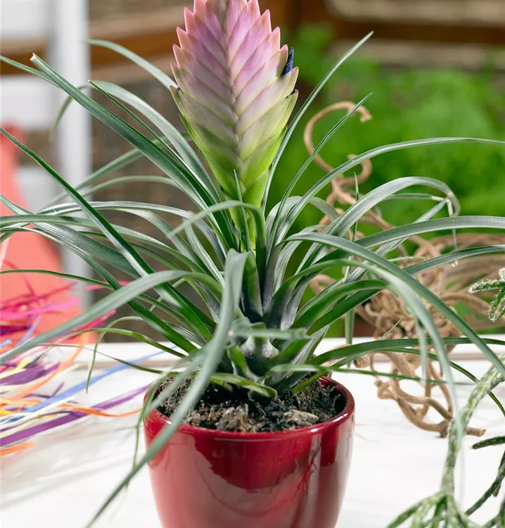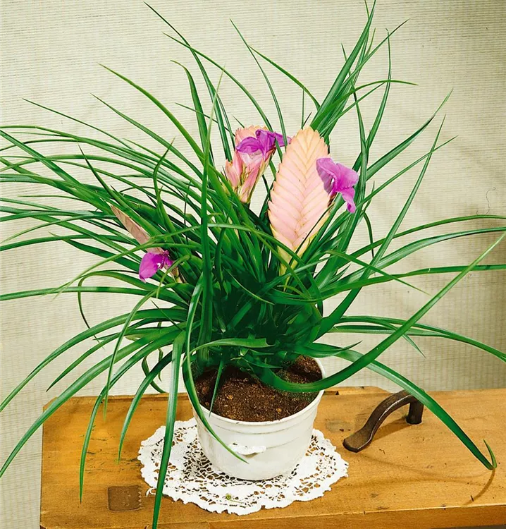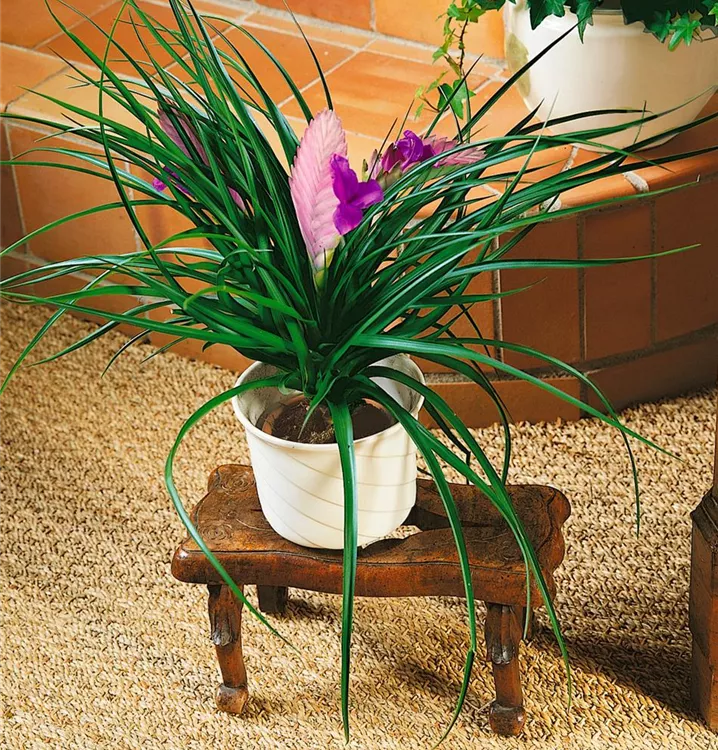 Die Tillandsie (Tillandsia) blüht über Monate hinweg. Je nach Sorte, erscheinen die dekorativen Blüten in den Farben Weiß, Gelb, Orange, Rot und Rosa. Bevorzugt wird ein sonniger bis halbschattiger Standort und eine durchlässige Erde.