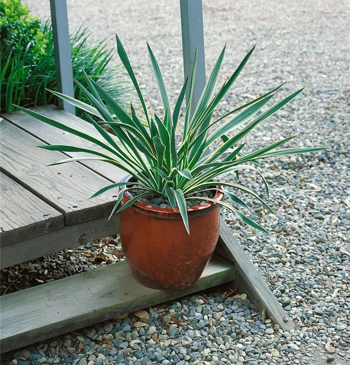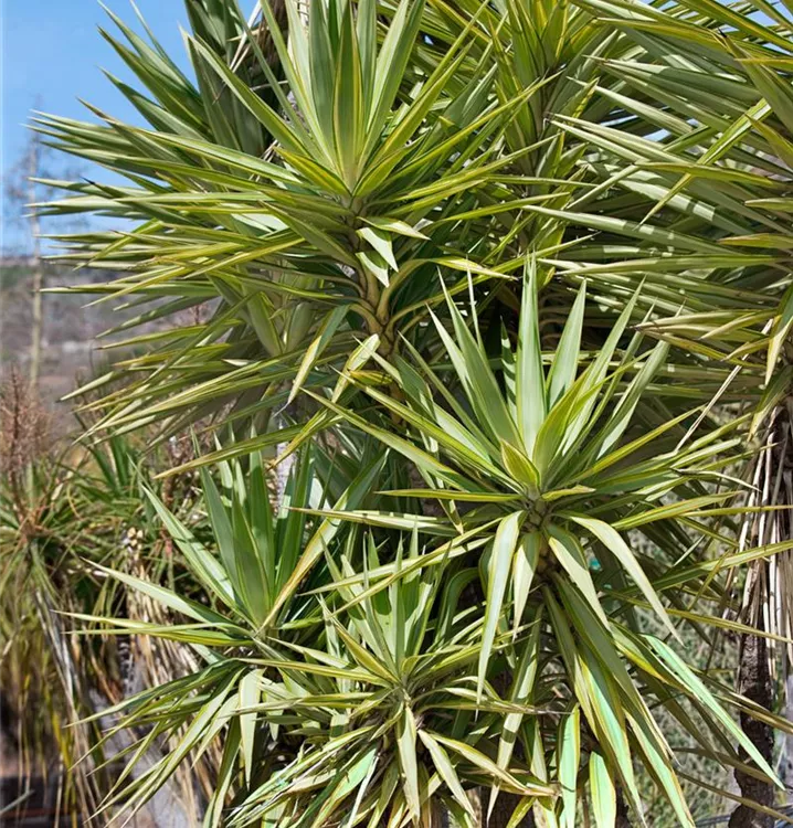 Die wintergrünen Blätter der Kerzen-Palmlilien sind grau-grün.