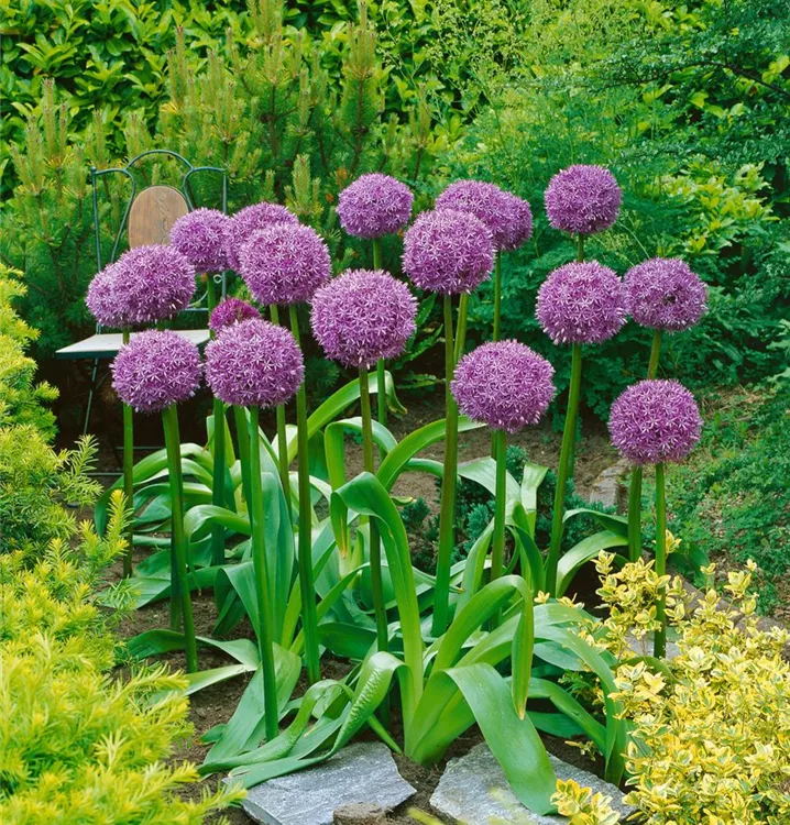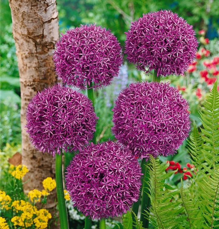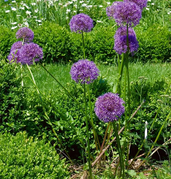 Die violetten Blüten des Garten-Zierlauch 'Globemaster' erscheinen in Dolden von Juni bis Juli.