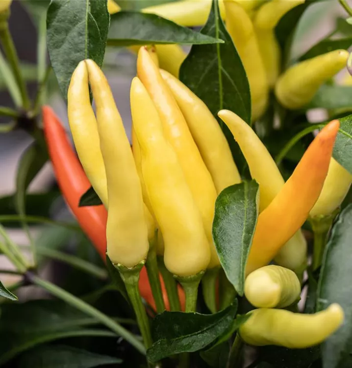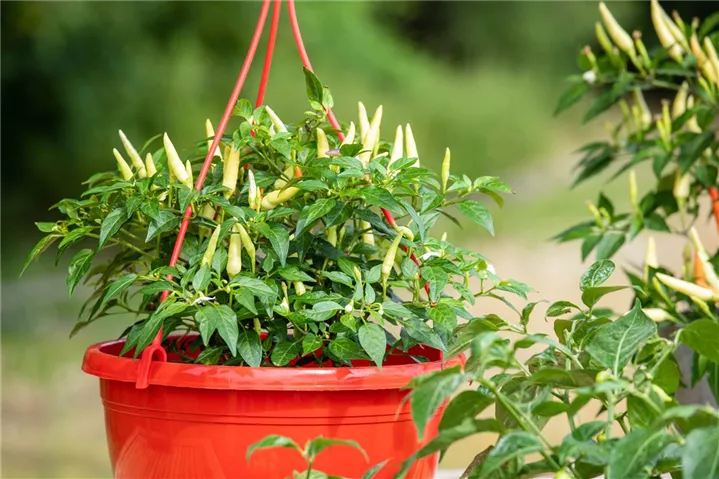 Die Chili 'Thai Chili' (Capsicum frutescens) bildet kleine Früchte, die sehr scharf schmecken und bereits ab August geerntet werden können. Für das optimale Wachstum der Chili 'Thai Chili' werden ein sonniger Standort und durchlässiger, nährstoffreicher Boden benötigt.